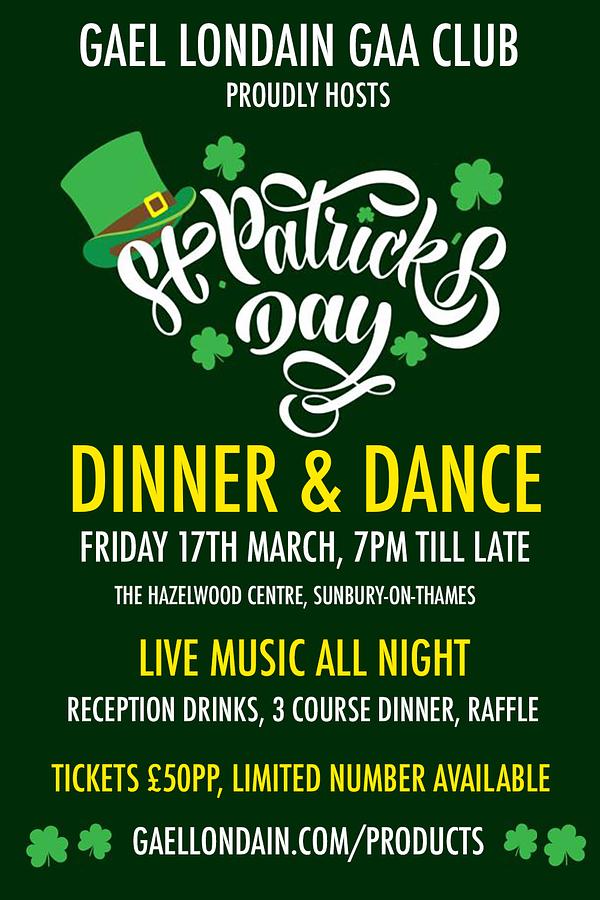 Gael Londain GAA club are proudly hosting a very special St Patrick's Day Dinner Dance evening!